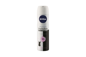 Nivea Women Invisible Black & White Deo Spray This deo spray is ideal for all skin types. Provides the first 48h antiperspirant against white marks and yellow stains on clothes with oceanic extract for all-day freshness. Provides all-day freshness without stains on clothes.48hr protection against body odor. The caring Nivea formula is gentle & protects your underarm skin against irritations. Leaves no residue on your skin or clothes- Black stays Black; White stays white for longer. Nivea Women Invisible Black & White Deo Spray