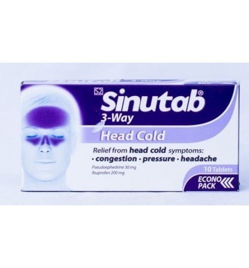 Sinutab 3 Way Tablets 10’s are used for symptomatic relief of nasal/sinus congestion with headache, fever and pain associated with the common cold and flu.